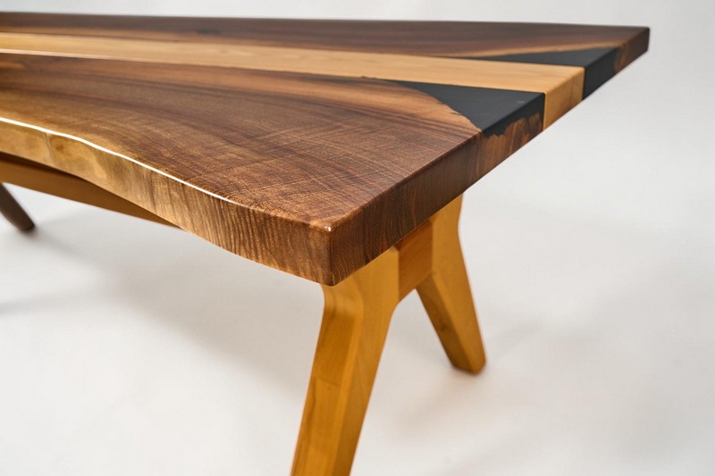 A bold and sophisticated design that showcases a captivating interplay of rich tones, created by the harmony of natural woods and deep black resin. Crafted from solid Walnut and Despotaki wood, each piece embodies elegance, character, and timeless appeal. Design & Construction Rangahausonly 1 available